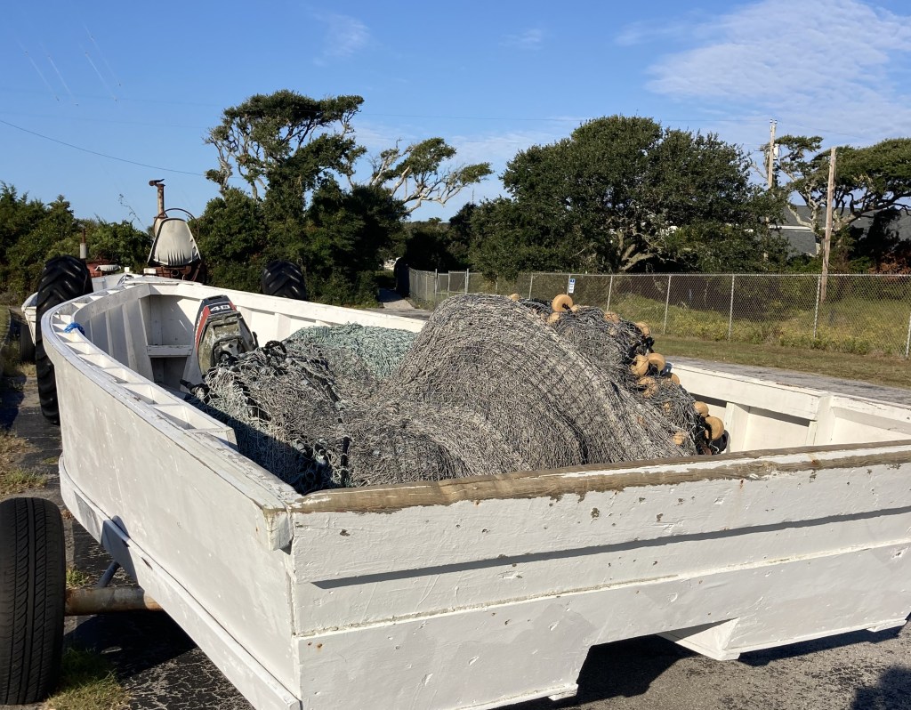 Originally, the mullet were netted and pulled in by hand, but now a skiff with a motor circles the fish, and a tractor or two pull in the catch. It still takes a strong and skilled crew, and only a handful of people carry on the tradition.