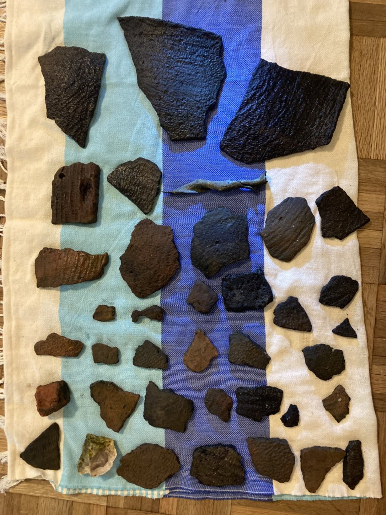 Salter Path was first settled in the late 1800s, though people had lived in small communities along Bogue Banks for much of that century, shifting as the winds moved sand, flooded gardens, or changed fish distribution. Even before that, people lived on Bogue Banks: Native American relics and bones have been found along the island, and it is these artifacts that give the town around Salter Path, Indian Beach, its name. One of these relics features in my book. I’ve even found similar pottery myself in the marsh, slowly washing away with sea level rise.
